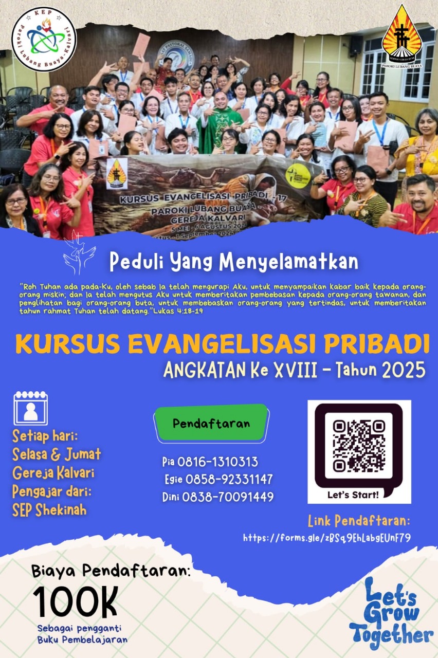 Diadakan secara tatap muka pada hari Sabtu & Minggu, 22 & 23 Maret 2025, di Aula Benediktus – Gereja Kalvari.