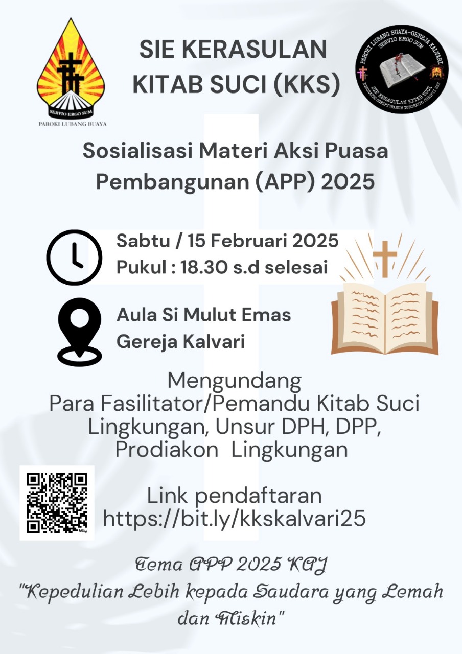 Seksi Kerasulan Kitab Suci mengundang para fasilitator / pemandu kitab suci lingkungan, unsur DPH, DPP & Prodiakon untuk hadir pada sosialisasi materi APP 2025 yang akan diadakan pada hari
