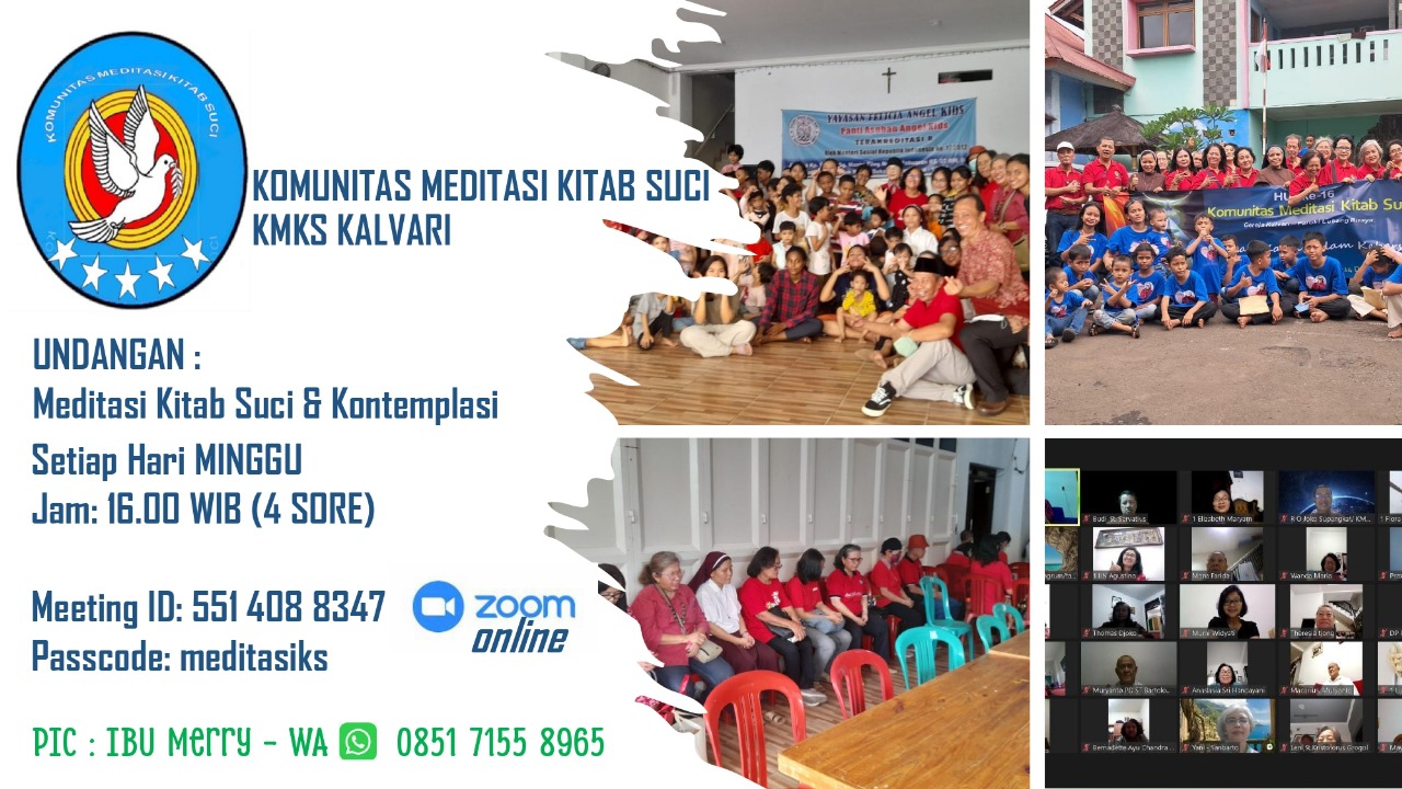 Mengundang saudara/i semua untuk mengikuti Meditasi Kitab Suci & Kontemplasi secara zoom online, pada hari Minggu, 09 Februari 2025, pukul 16.00.